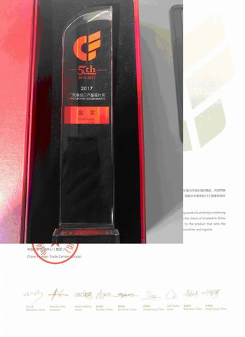 CF奖是广交会出口产品设计奖的简称,奖项的评选由境内外设计界专家、商协会专家、企业设计总监和境外采购商代表构成评委,突出专业性、国际性和市场性相结合的特色。此次,国贸公司代表大连实德科技公司申报的聚酯合金产品,经过组委会的初评、终评,最终得到评委会全体人员的一致认可,在众多参展产品中脱颖而出,获得了“金奖”称号。